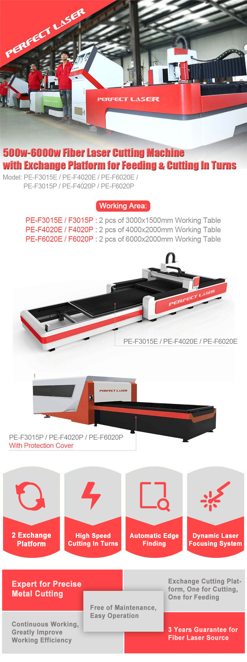 Perfect Laser is a professional laser cutting machine manufacture. In order to meet the market requirement for laser cutting machine, Perfect Laser now launch a new kind of CNC laser cutting machine. It has the two kinds of platform, that is the exchange platform to feed automatically, greatly improving working efficiency. This machine used plate welding structure . It can weld the steel plate with thickness of about 12 mm. The height of the exchange platform is high with chain-type transmission and dual rail, which can greatly save the time of feeding and unloading. Fully enclosed structure can effectively reduce the laser radiation. Since this kind of machine launched, it is widely praised by the customers at home and abroad.