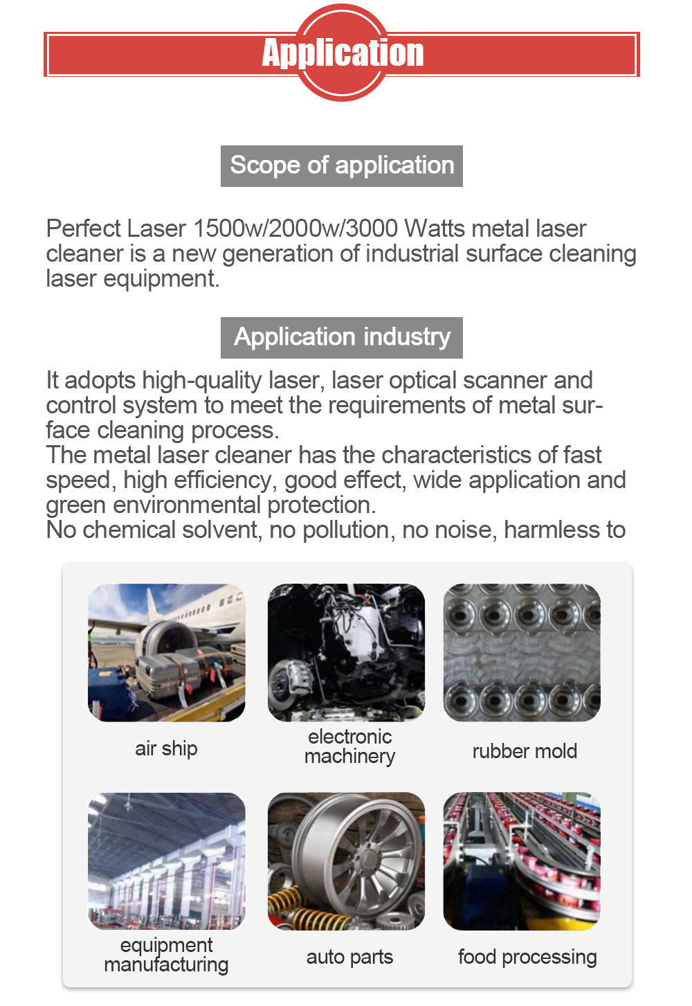 Perfect Laser 1500w/2000w/3000 Watts metal laser cleaning machine is a new generation of industrial surface cleaning laser equipment.