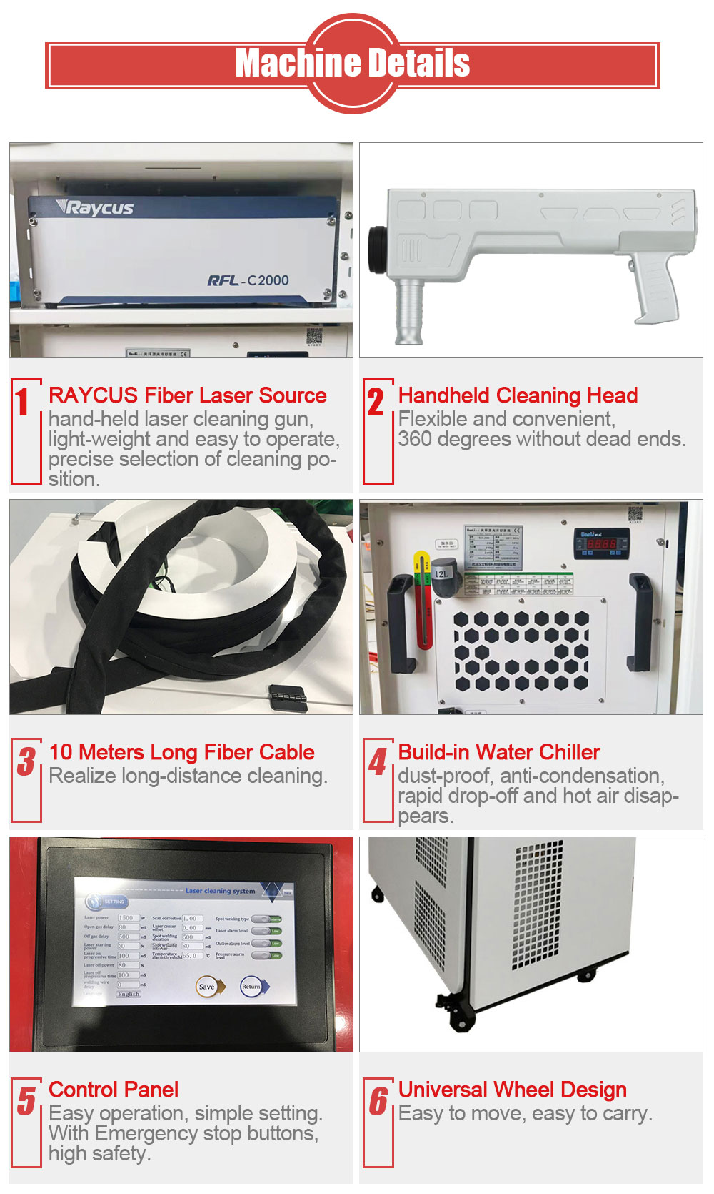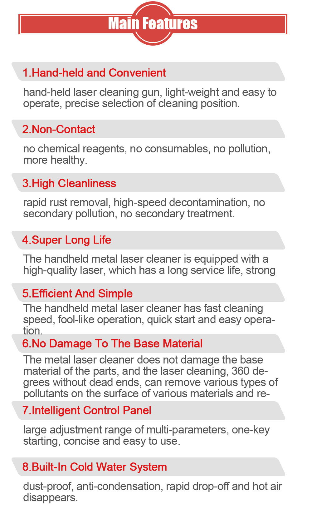 Hand-held laser head, light-weight and easy to operate, can precise selection of cleaning position.