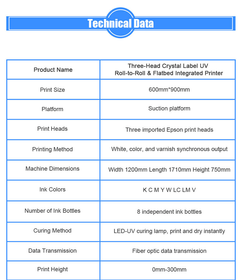 Equipped with state-of-the-art UV printing technology and three imported print heads, it allows simultaneous printing of white, color, and varnish layers—significantly improving both efficiency and print quality.